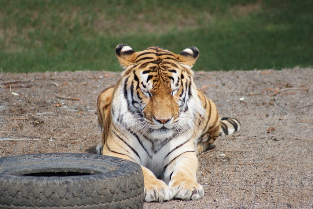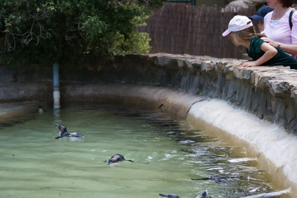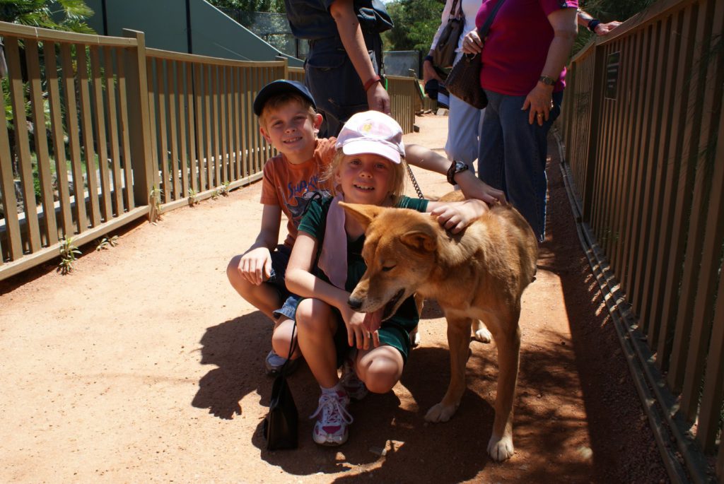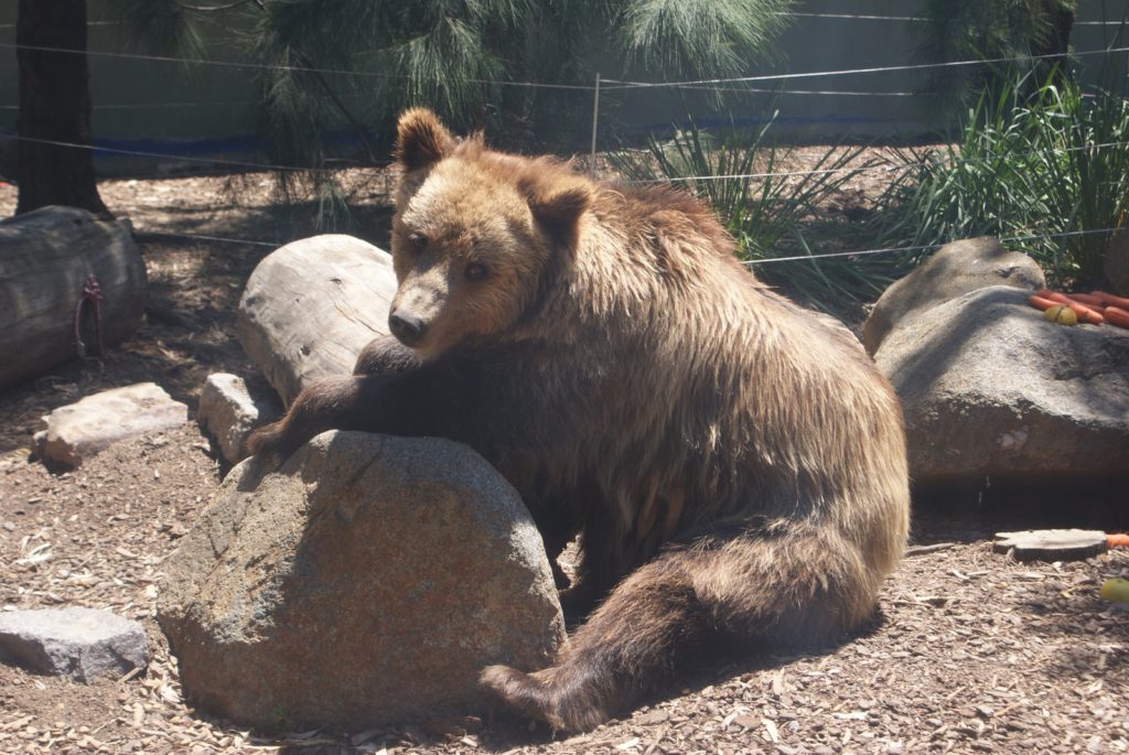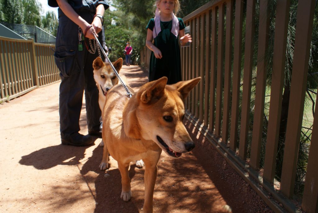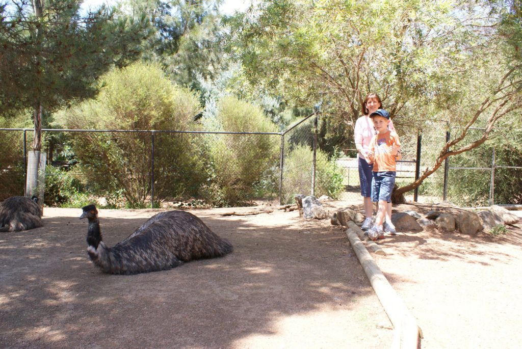 Hot Brown Bear.Two dingos out for a walk. They are peering intently at two guinea fowl on the other side of the fence.Now Chris and Carrie want a dingo as a pet!Old man emu.And you think you have bad hair days.Little or fairy penguins swimming in their cool pool.Tired Bengal tiger with tyre (Australian spelling).