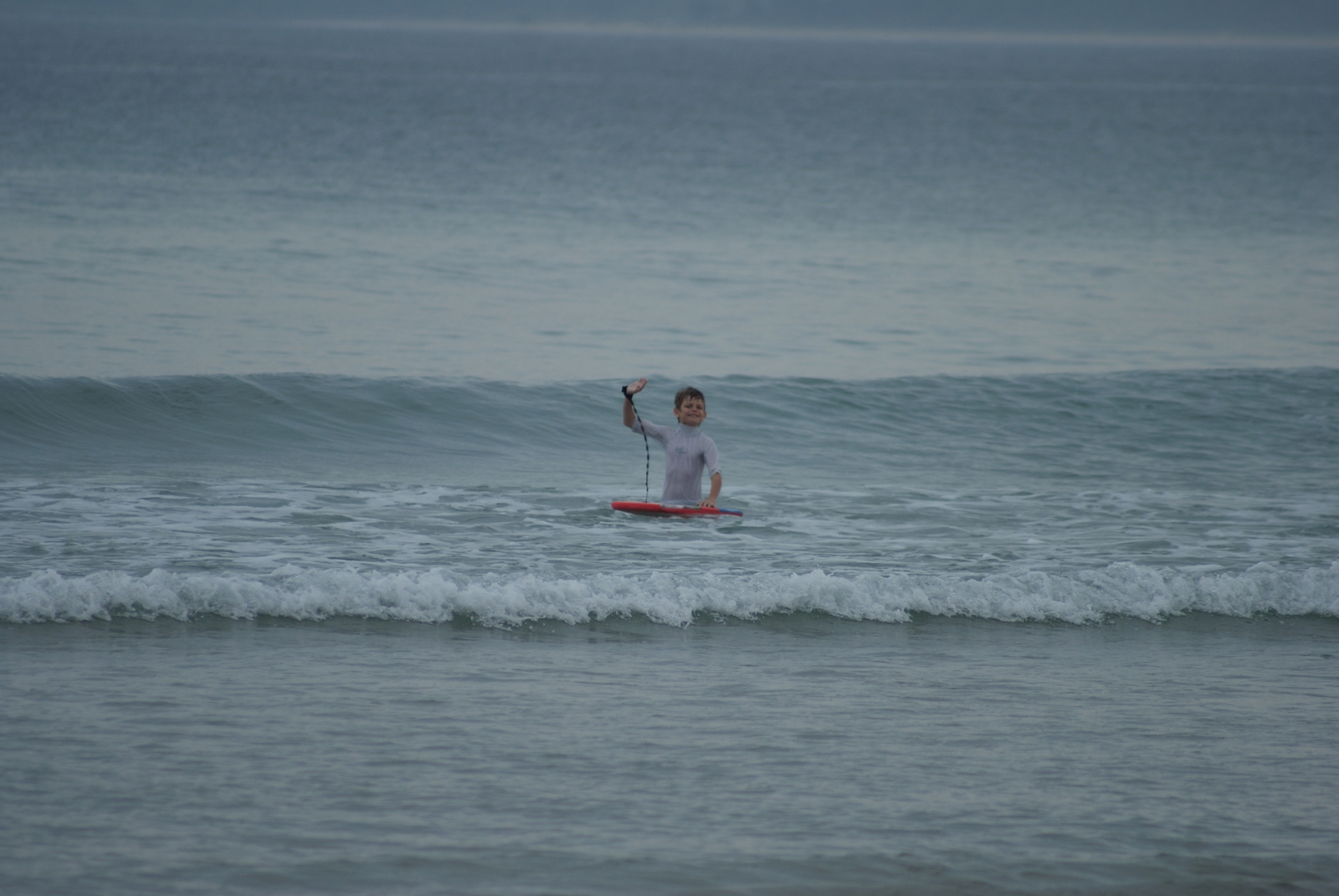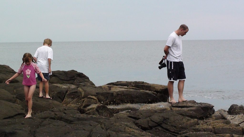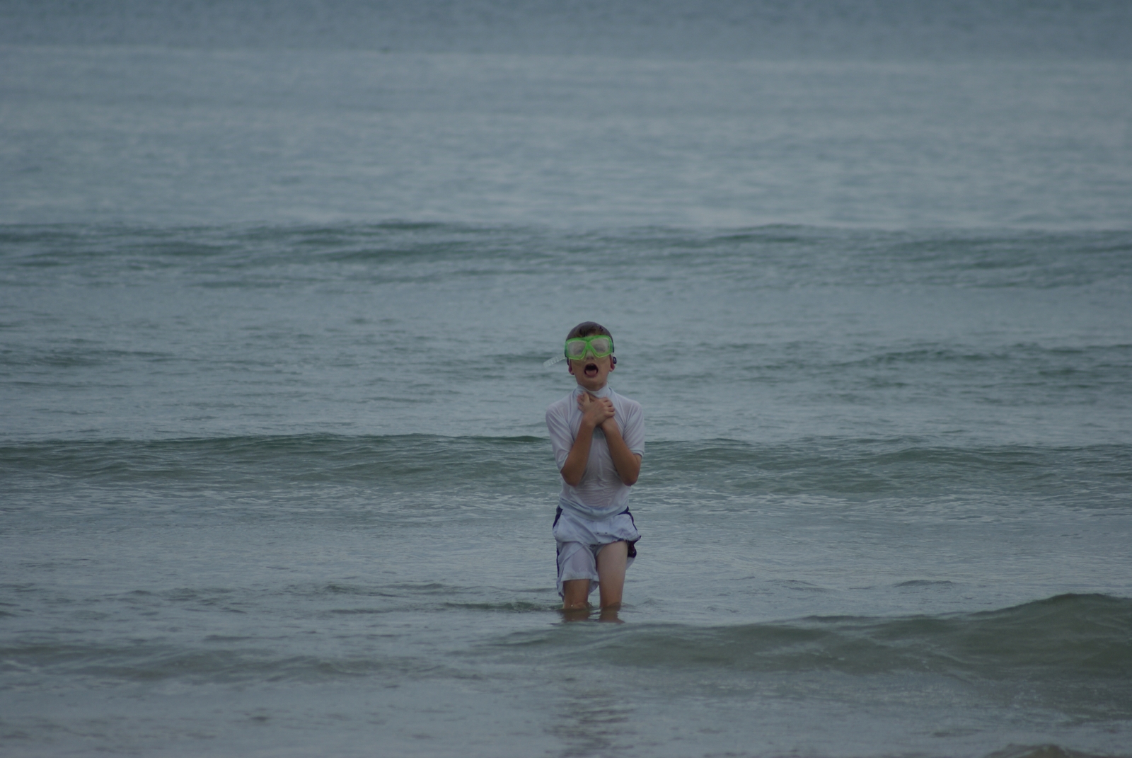 Carrie enjoying the waves.Seagulls are much the same here.Destined for the stage – Chris got some salt water in his mouth.Boys will be boys.Chris looks all alone in the deep ocean. But he isn’t!We’ve been told they are the rats of the bird world. We still like them, though.Carrie actually dug up a live clam.Lava rocks and tide pools.Looking for crabs.