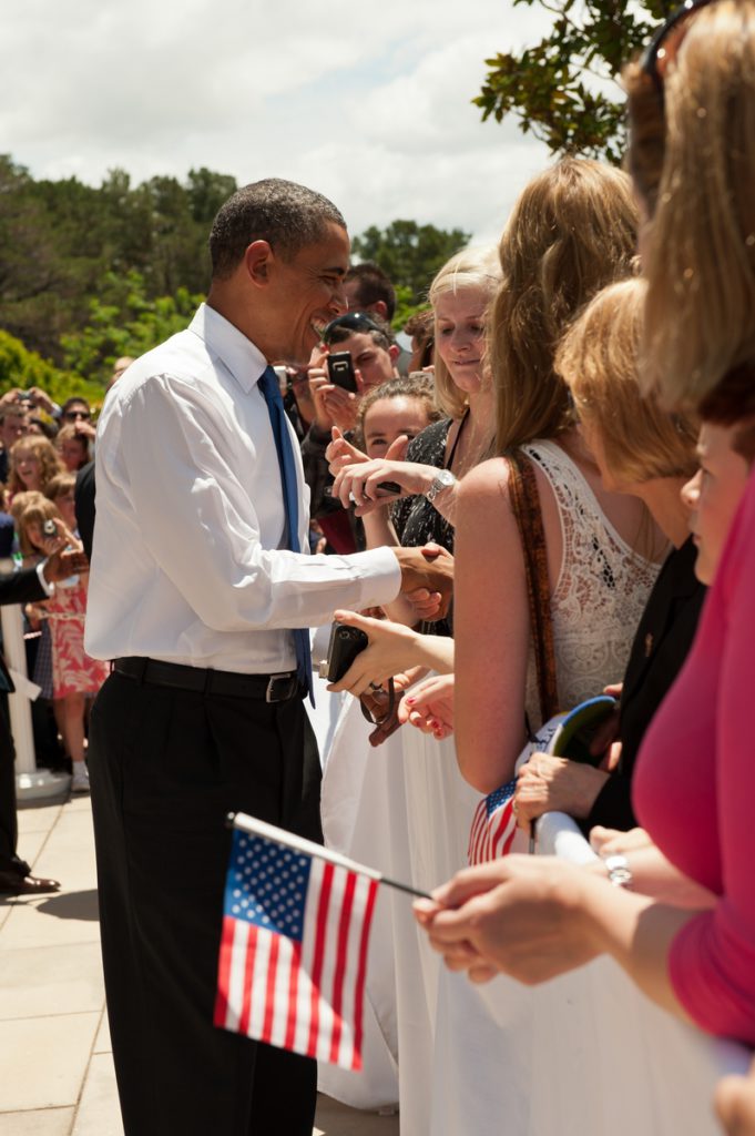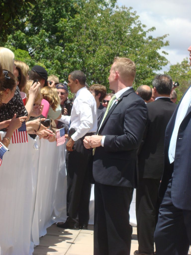 President Obama came to Australia for a brief visit in November. Just before he left Canberra, he stopped by the Embassy to speak to the employees and their families. Chris and Carrie were able to stand in a reserved section right next to the President.