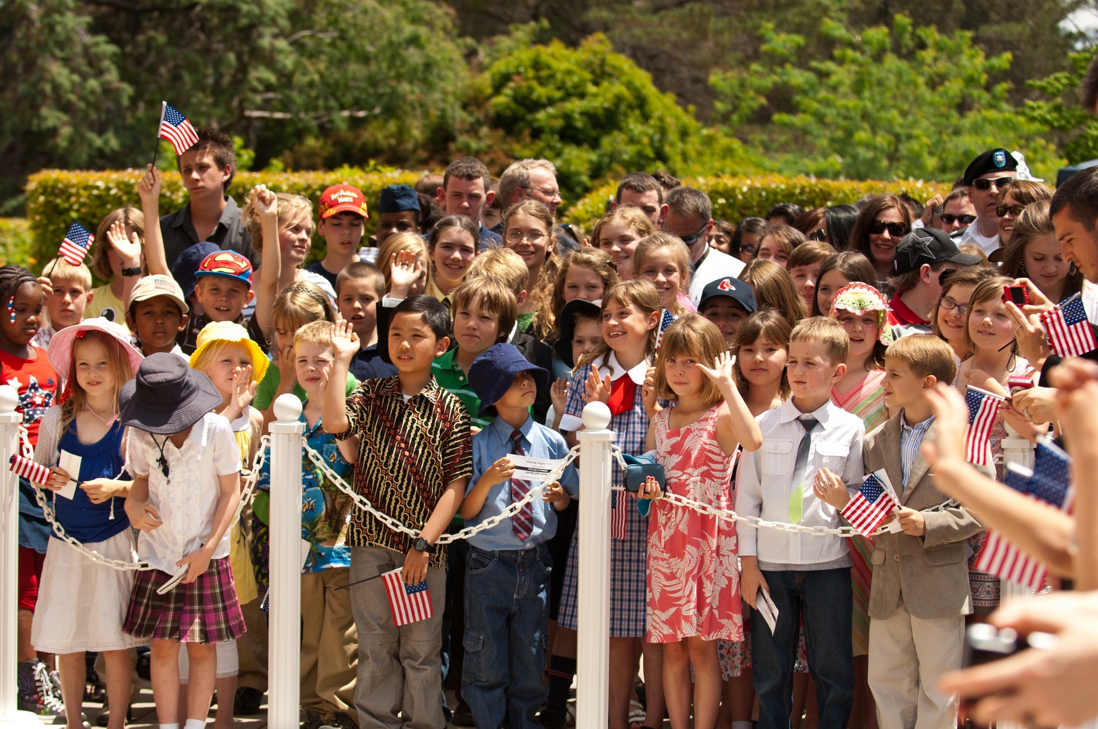 President Obama came to Australia for a brief visit in November. Just before he left Canberra, he stopped by the Embassy to speak to the employees and their families. Chris and Carrie were able to stand in a reserved section right next to the President.
