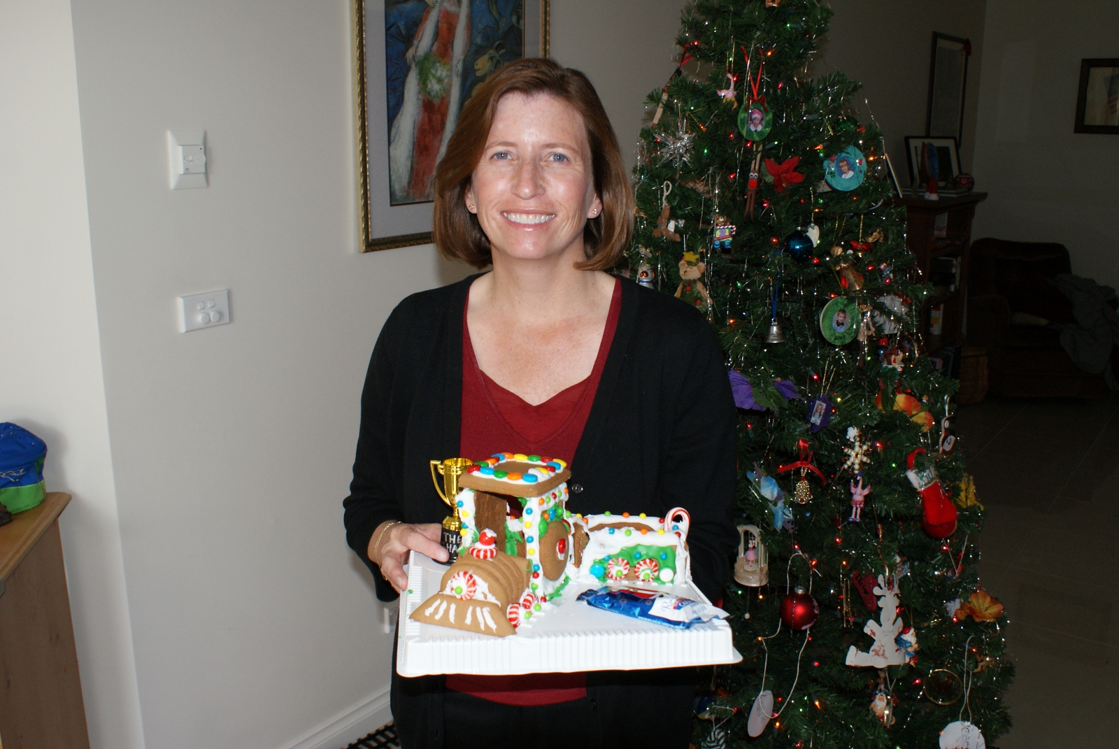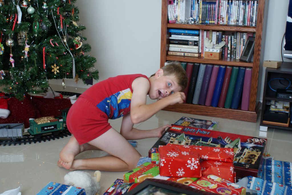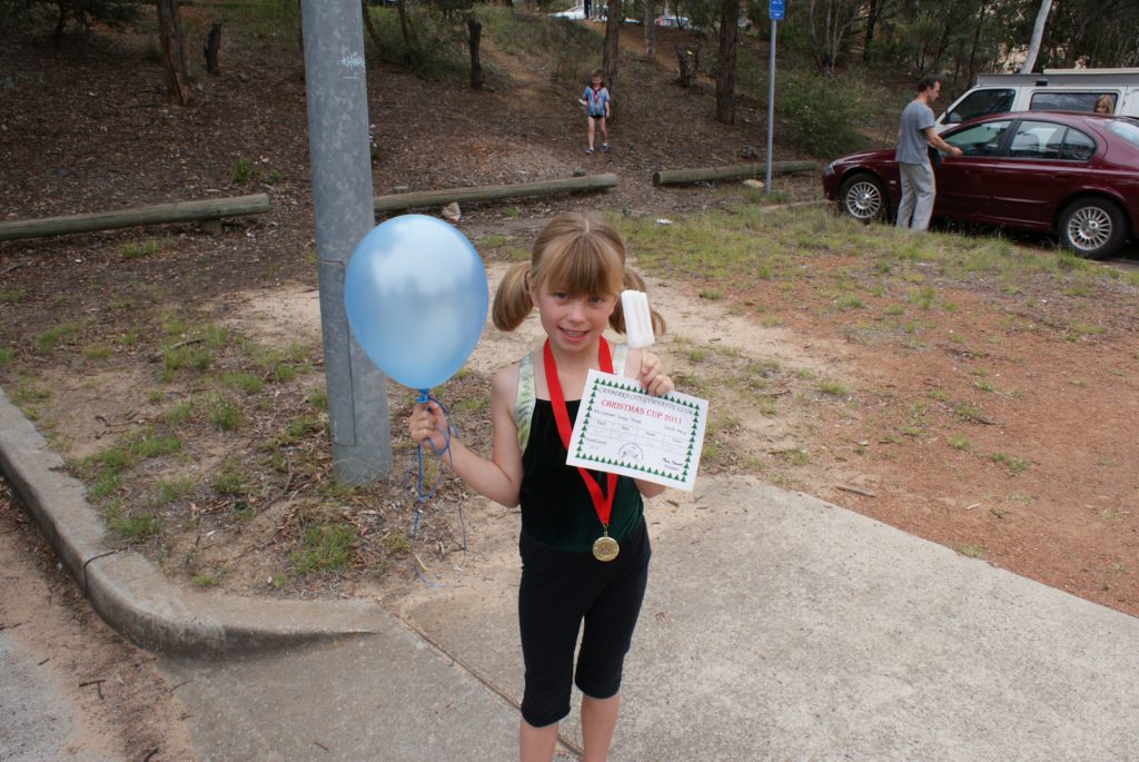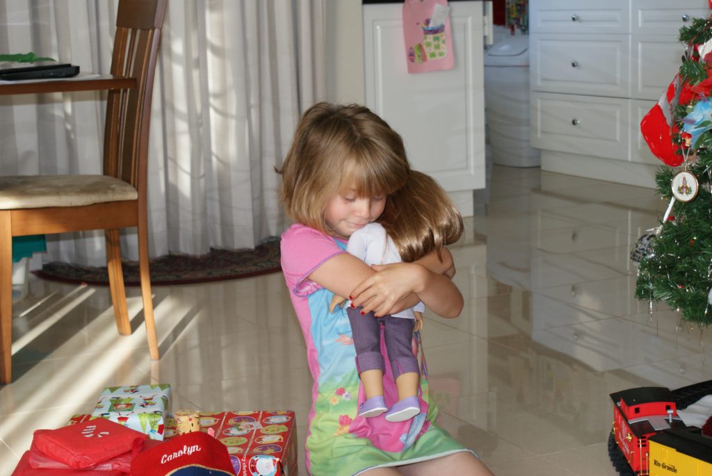 Carrie and the emu.She got to feed the giraffe a carrot.And fed the lion a bit of raw meat.Ewww!Carol made a gingerbread train and won a “major award”!Carrie participated in the Christmas Cup at her gymnastics club.At the end she got a balloon, popsicle and certificate.Chris and Carrie after they divvied up the presents on Christmas morning.Carrie hugs her American Girl doll.Chris is excited about he new Lego Harry Potter Castle.After the presents are unwrapped and assembled, Chris settles in with a new book.And Carrie tries on her new clothes.