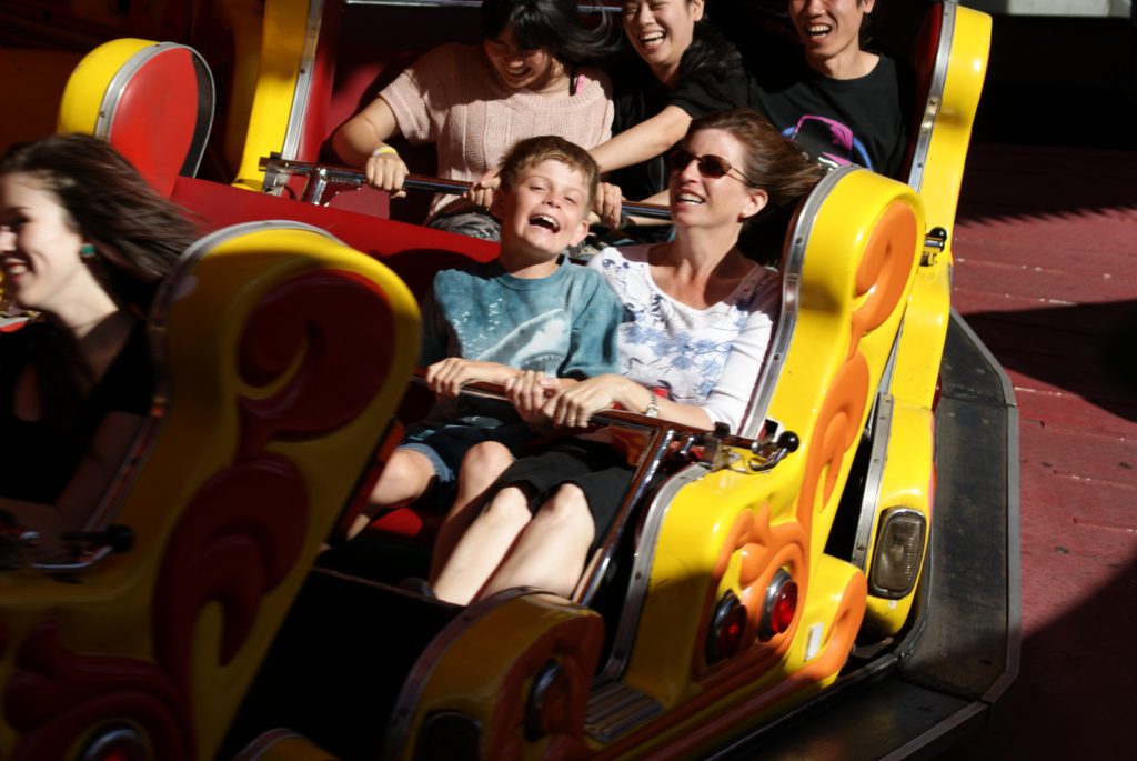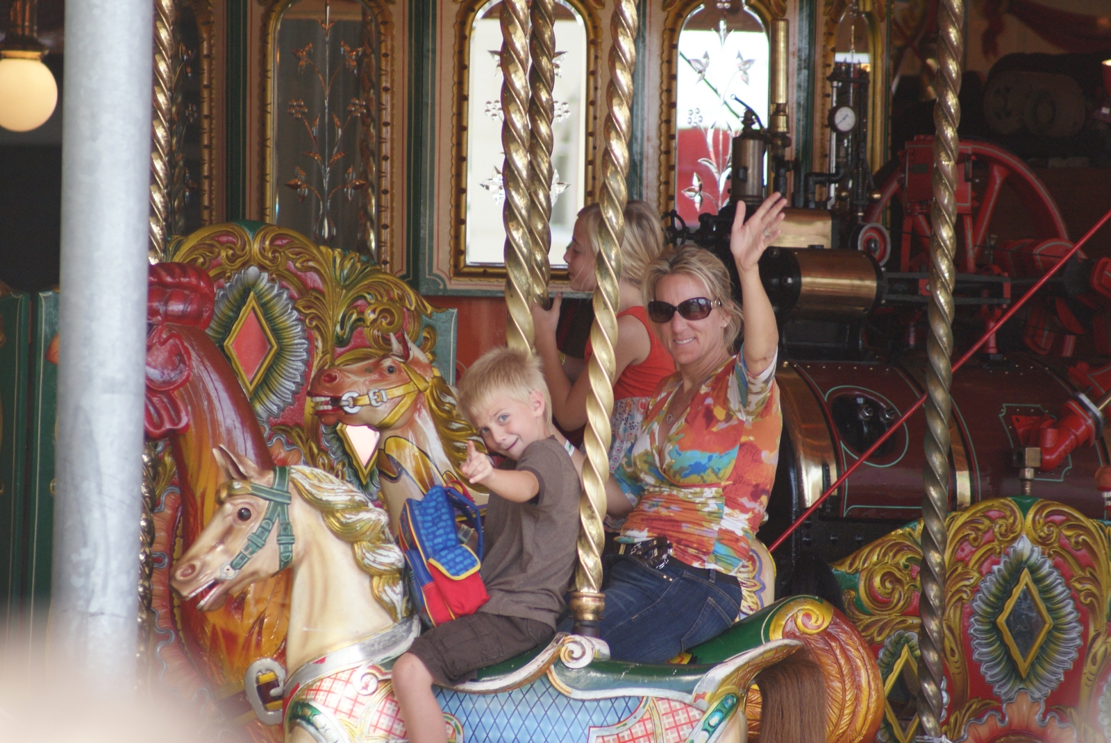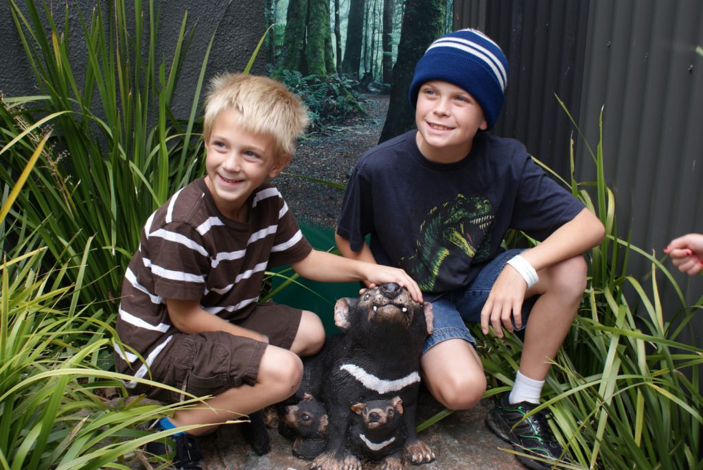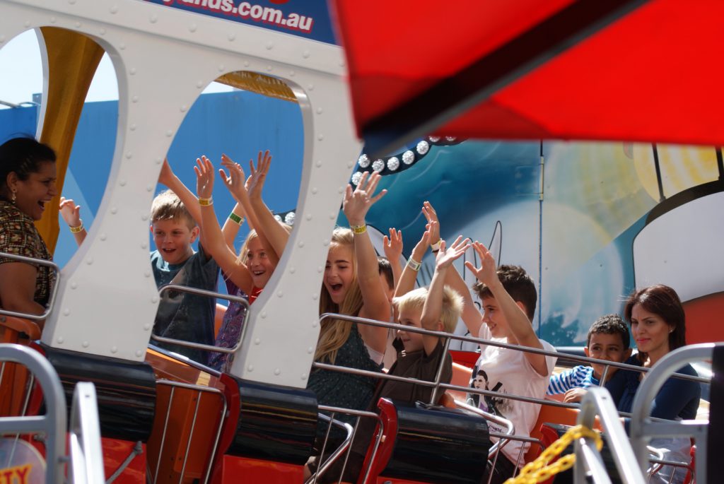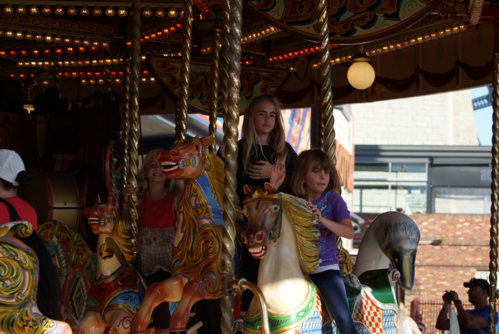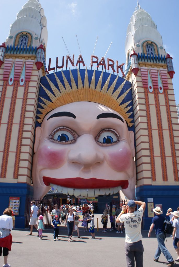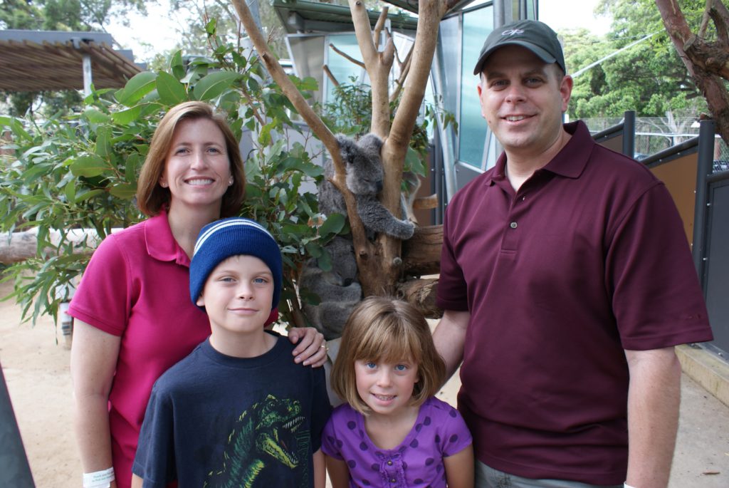 On the way to a Harry Potter exhibition, the cousins tempted fate by hopping across the water feature. Carrie took an unplanned dip a few seconds later.This sea lion greeted us at Taronga Zoo.The lazy red kangaroo.Chris and Zack by an uncharacteristically pleasant Tasmanian devil.All the cousins in front of the seldom seen platypus.Zack finds a hand print just his size.We met three young koalas named River, Ash and Rubi.These giraffes have a great view of the Sydney skyline across the harbor.After the zoo we made a quick visit to the Opera House.The cousins are dwarfed by the sail of the larger hall.We walked across the Harbour Bridge for the first time. This afforded a different perspective of the harbor.Nearly halfway across the Harbour Bridge we had a really nice view of the Opera House and Circular Quay.Across the bridge was Luna Park, a boardwalk-style amusement park.The cousins started on this wild pirate ship.The carousel was a favorite ride.The girls enjoyed waving to their subjects.The Ferris wheel was another favorite ride.A view from atop the ferris wheel.Chris and Carrie talked Dave into this torture chamber. It looks like Carrie enjoyed the ride.Chris and Carol get tossed about.Another view of the Opera House on the ferry ride back to the hotel.Steve and Susie in front of the Blue Mountains.The three sisters, five cousins and two strangers.