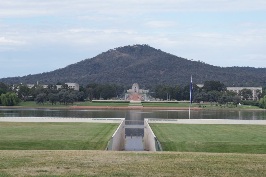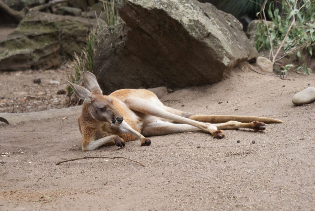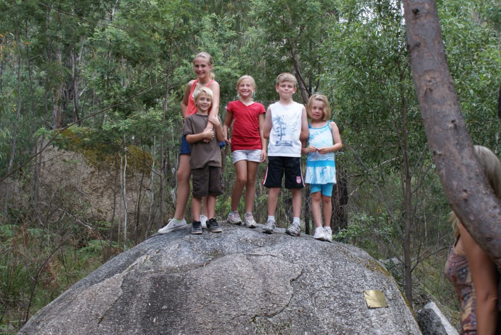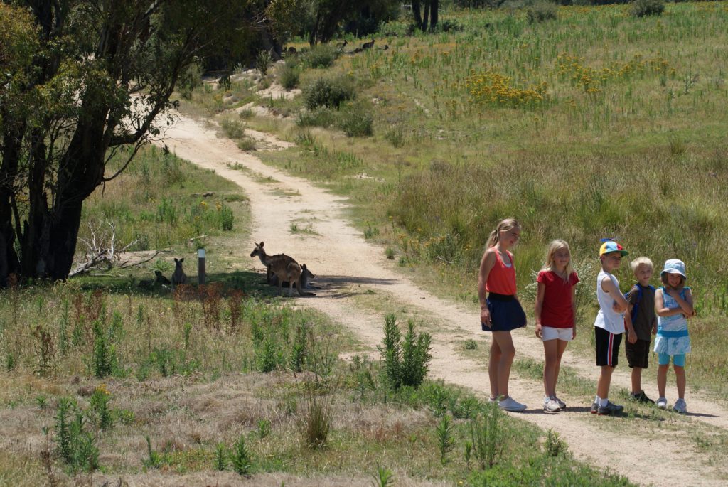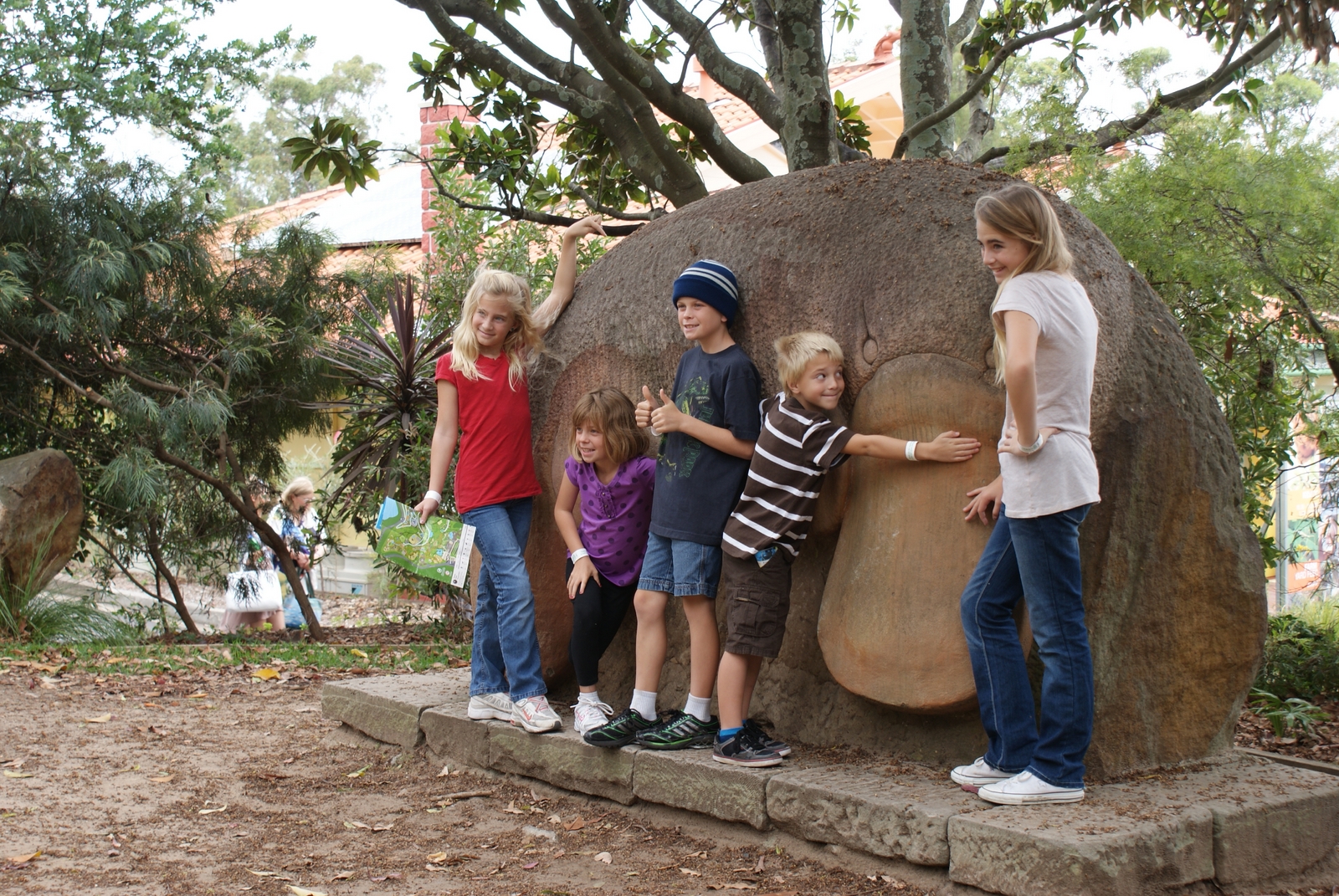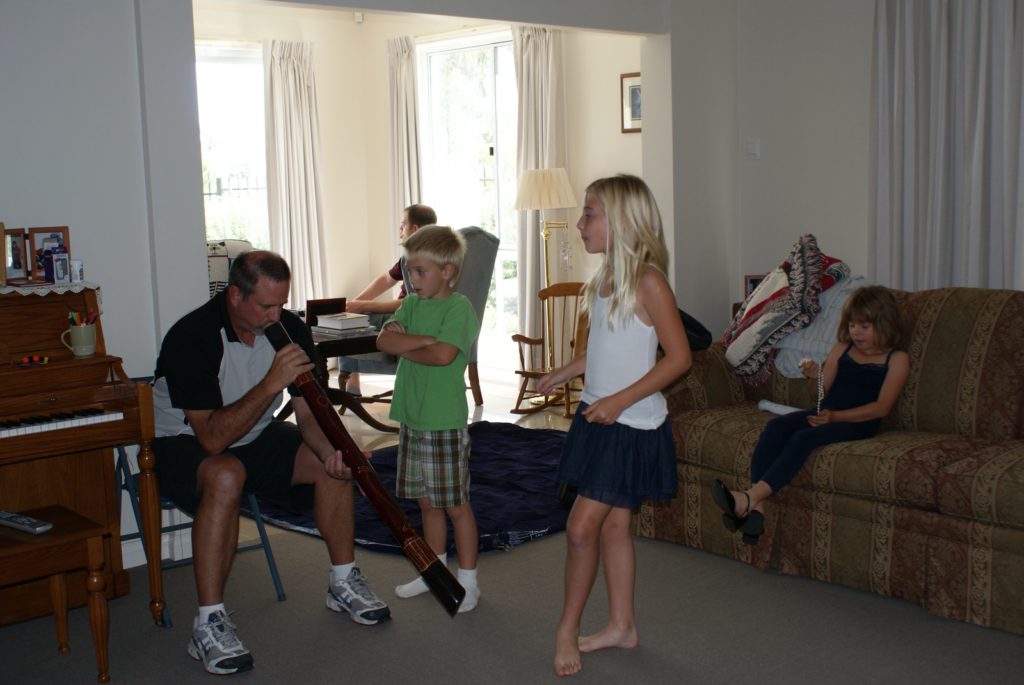The view from the Consulate showing the Harbour Bridge.Oohh! Ahh!We visited Tidbinbilla Nature Reserve and met this emu trying to grab wild pears off the tree.The cousins approach some wild kangaroos.The Australian bush doesn’t look too different from the hill of California…except for all the kangaroos!This little possum was trying to rest in a rock shelter used by aboriginals over 20,000 years ago.The cousins deep in the eucalypt forest.A small rock wallaby nearby.And an eastern grey kangaroo with her joey.Back in Canberra we visited the Australian War Memorial.The view across ANZAC Parade to the old (bright white) and new (giant flag pole) Parliament.The opposite view from old Parliament looking toward the War Memorial.The cousins made gingerbread houses and wore the paper hats from their Christmas crackers.Finally, Steve entertains the cousins with his prowess on the didgeridoo.