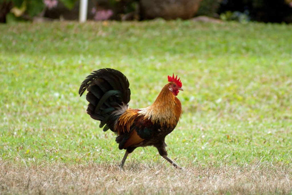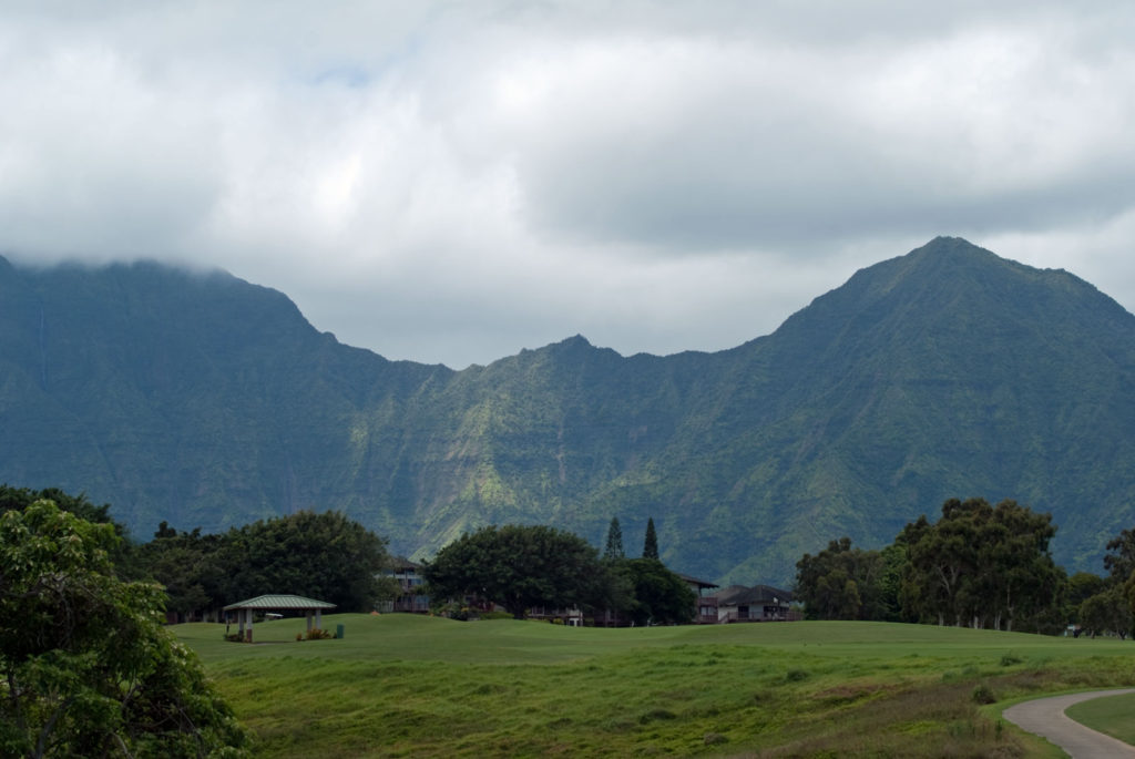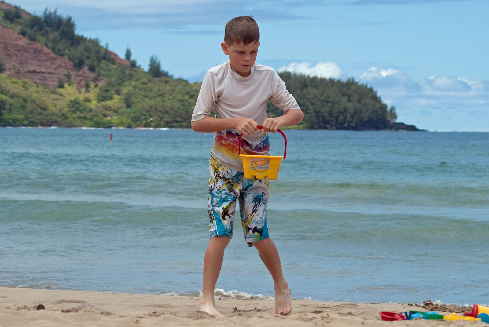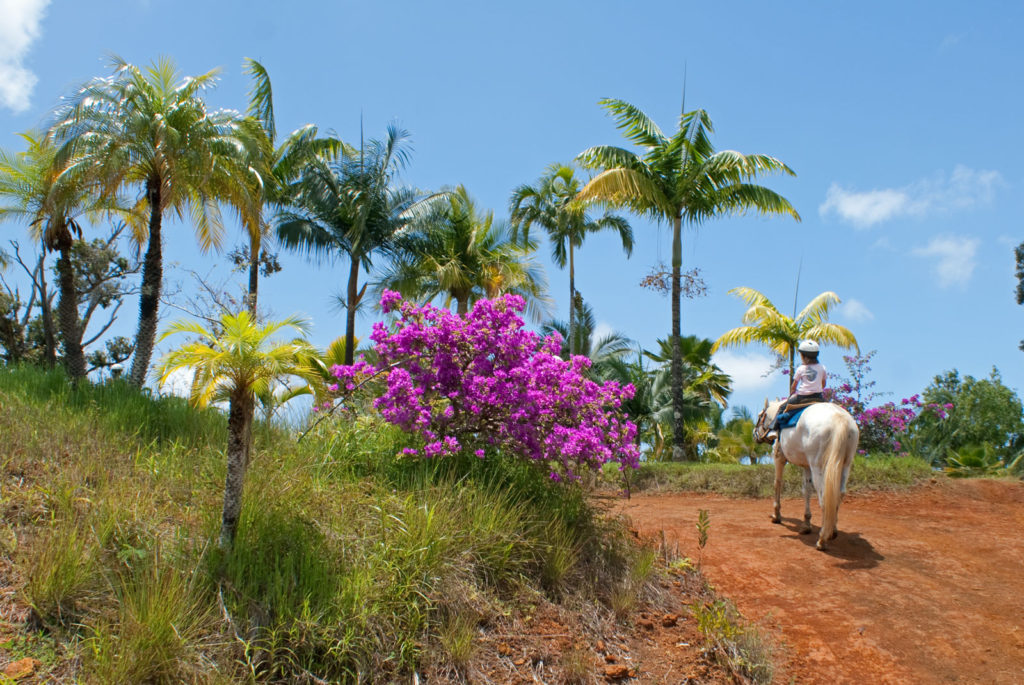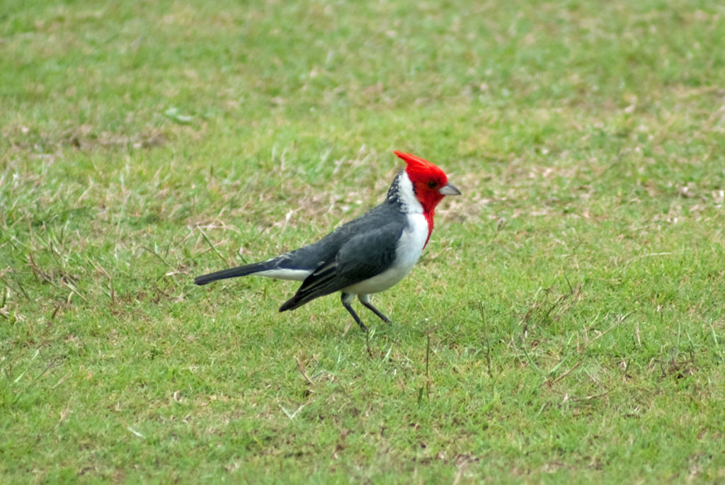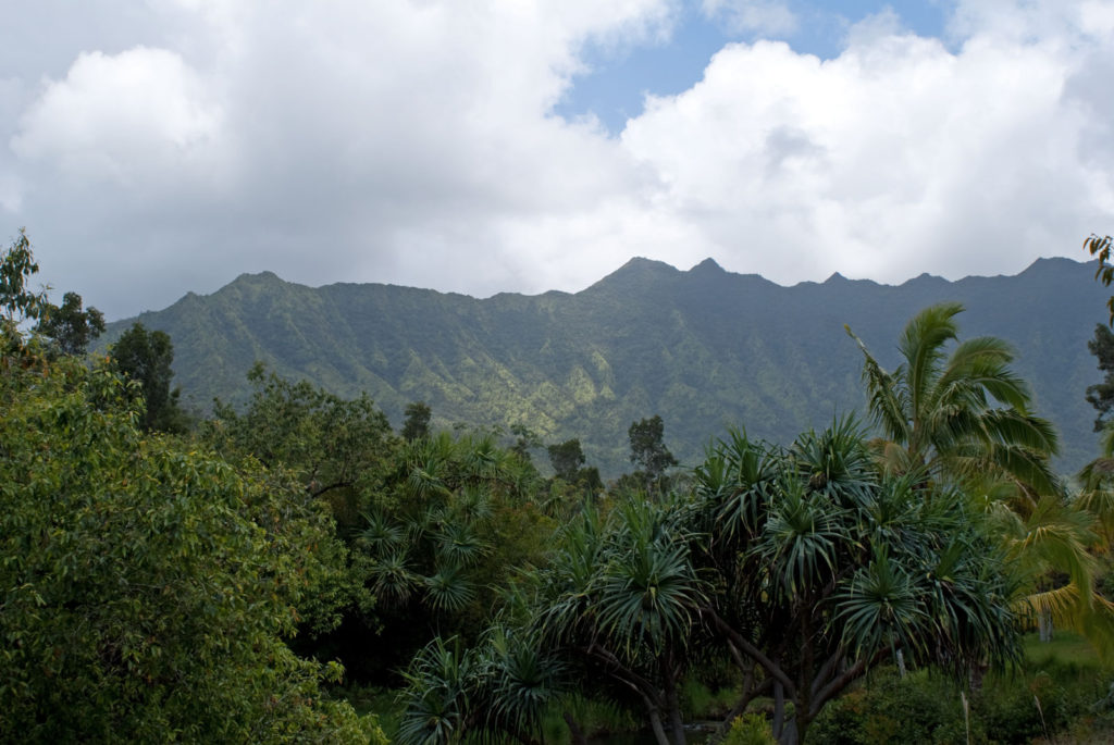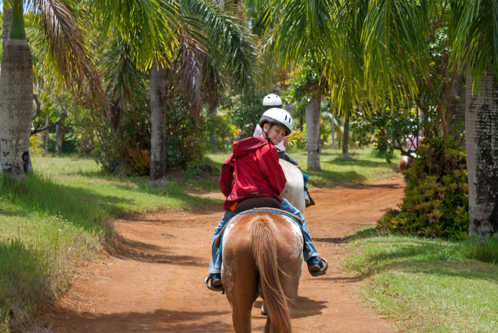 Just west of Princeville was Hanalei Bay, shown here in the distance. We went to the beach there a couple of times. Chris and Carrie test the waters at Hanalei Bay.Carrie had a blast on her boogie board.Whee!Chris enjoyed his boogie board too, although he wasn’t quite as fearless as Carrie.Chris spent most of his time at the beach building sand castles.Evidently sand castles take a lot of concentration……and occasionally the help an engineer.Our resort offered a variety of activities, including tennis lessons. Here Carrie shows off her backhand.See the ball…be the ball…you are the ball.While the kids were playing tennis, Dave and Carol relaxed in the shade of a banyan tree.Another resort activity was hula lessons.The dancers after their lesson.While the girls were learning to hula, Dave and Chris went on a walk around Princeville. Here are mountains to the west.And here is the coast and ocean to the east.As we walked we came across a plant Dave remembered from his childhood on Oahu. Commonly called sensitive plant or touch-me-not, it is shown above with the pink flowers and dark green leaves. When you touch the leaves, they fold inward toward the stalk for a few minutes.Here is a blooming Red Ginger flower.And here is a Red Tower Ginger.And the iconic Plumeria.One bit of trivia is that Kauai is infested with thousands of wild chickens. Some people call them “jungle fowl”, which has a slightly more distinguished sound to it. Unfortunately the males tend to crow all day long, not just in the morning.Red-crested Cardinals are also very common on the island.We also sighted the official state bird of Hawaii, the Nene or walking by. The Nene evolved from the Canada Goose and is now the rarest goose with less than 1000 birds in the wild.One evening we went to the Smith Family Garden Luau. Here Kamika Smith tells the guests how the pig (in the dirt-covered pit at his feet) was prepared.Chris and Carrie dressed for the occasion.Peacocks roamed the gardens around the luau. We finally realized the sound made by Kevin the snipe in the move Up is the call of a peafowl.Just before we ate, Chris wandered over to a small lake by the gardens.The meal included Purple Sweet Potatoes…there just isn’t enough blue food!During the meal some of the braver guests got on stage and danced. Carrie was able to show off the moves she learned in fer hula lesson.After the luau, we watched a show featuring traditional dances from Hawaii, Tahiti, Samoa, Philippines, New Zealand, China and Japan. It was too dark to get good pictures of the show, but some of the performers posed for a picture with Chris and Carrie afterwards.Our last big activity was a horseback ride through Silver Falls Ranch. This picture was taken just after Carol got on her horse and is the last time she was seen smiling till she dismounted. Her horse was a bit naughty and kept taking the road less traveled.Here we go toward the Kamookoa Ridge.Carrie seemed to ride like a pro.After about an hour we stopped by a small pool for a break and lunch.Chris didn’t need much prompting to jump in.Carrie, on the other hand, needed to see Chris do it a couple of times before she took a turn.Splash!We couldn’t leave Hawaii without a picture of a Hibiscus.Lunch was a simple pork and rice meal, but very tasty.The lunchtime view was pretty good too.On the way out we passed some pretty purple flowers that contrasted with the red earth and green trees.Happy Chris.On our last day we took this picture of the taro fields and distant mountains.While Dave and Carol were enjoying the view, Chris and Carrie were in their own little world.