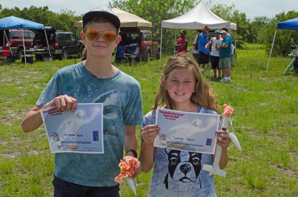 Chris and Carrie participated in a model rocket competition where they built and launched their own rockets. The event was sponsored by the Cape Canaveral section of the American Institute of Aeronautics and Astronautics (AIAA). The event was hosted by the Spaceport Rocketry Association and many of their members were launching rockets of their own throughout the day. We included pictures of some of their big rockets too. As usual, you can click on any of the pictures to see a larger version. If you do, you can press the escape key on your keyboard return to this post.