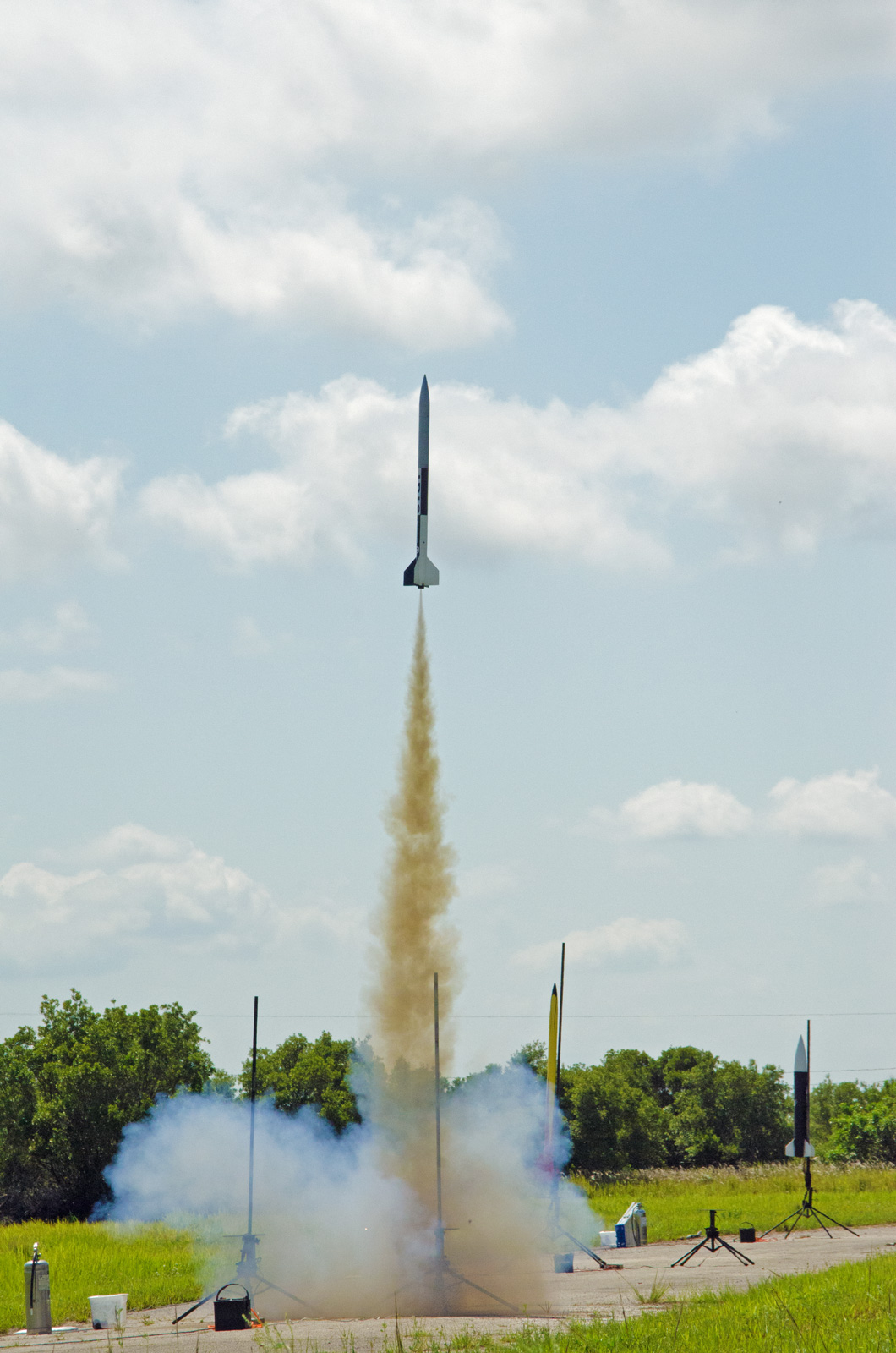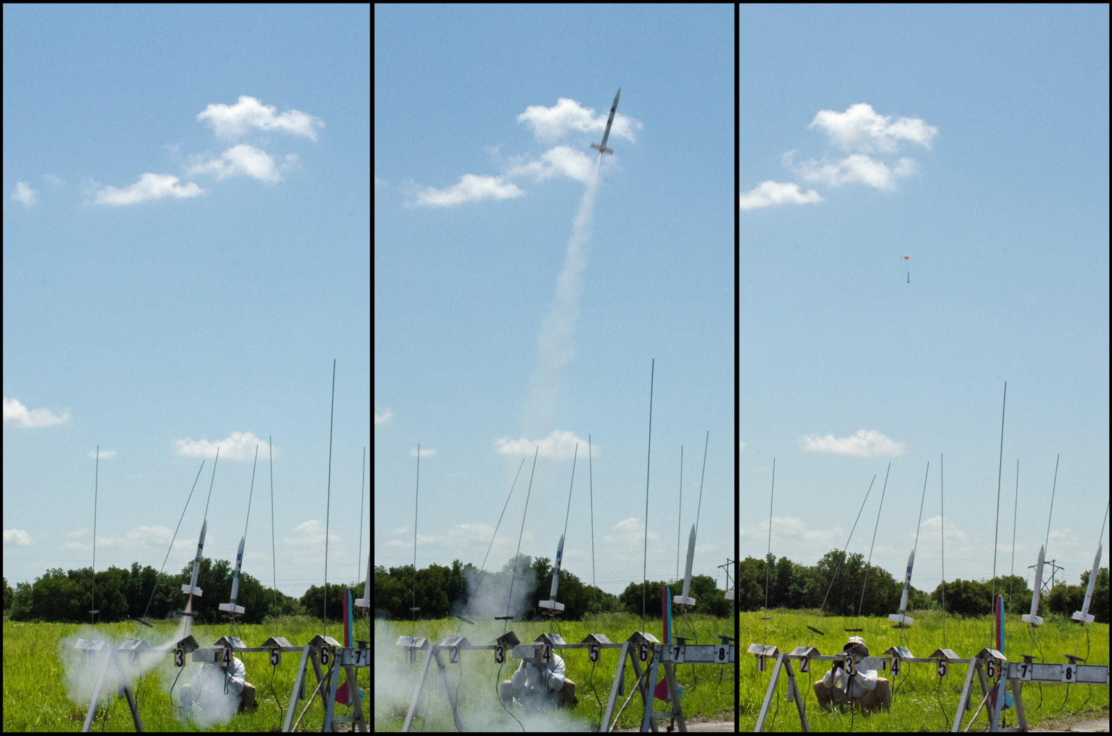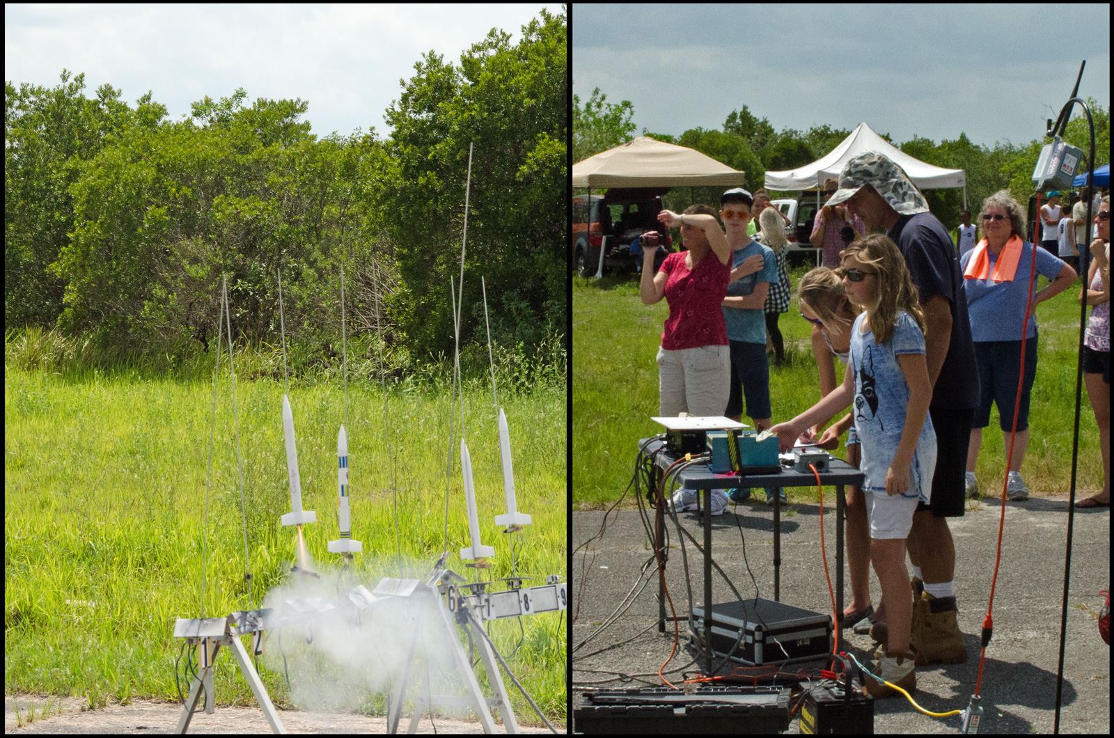 Chris and Carrie participated in a model rocket competition where they built and launched their own rockets. The event was sponsored by the Cape Canaveral section of the American Institute of Aeronautics and Astronautics (AIAA). The event was hosted by the Spaceport Rocketry Association and many of their members were launching rockets of their own throughout the day. We included pictures of some of their big rockets too. As usual, you can click on any of the pictures to see a larger version. If you do, you can press the escape key on your keyboard return to this post.